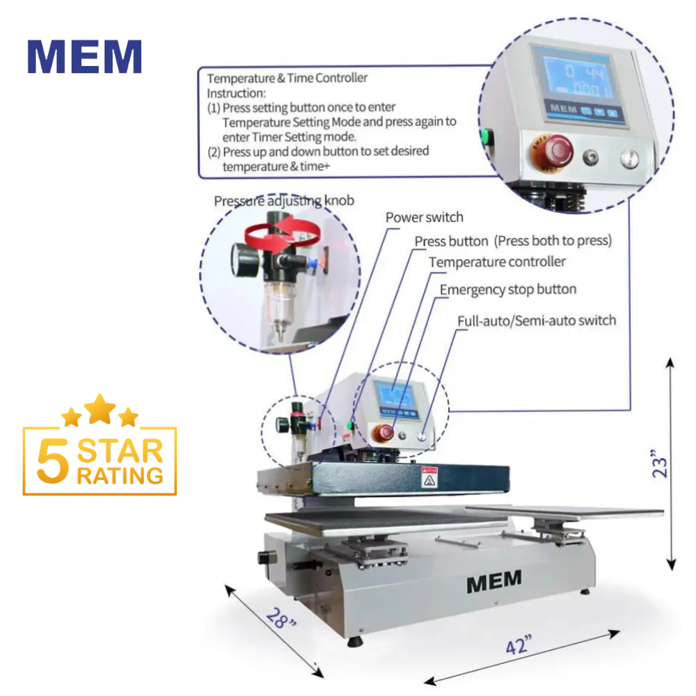 The Pneumatic Double Station Heat Press 40cmx50cm press, combines a heavy duty solid industrial grade pressing framework with high quality electric components.