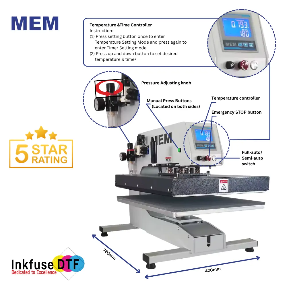 The Pneumatic Single Swing Way Heat Press 40cmx50cm, combines a heavy duty solid industrial grade pressing framework with high quality electric components.